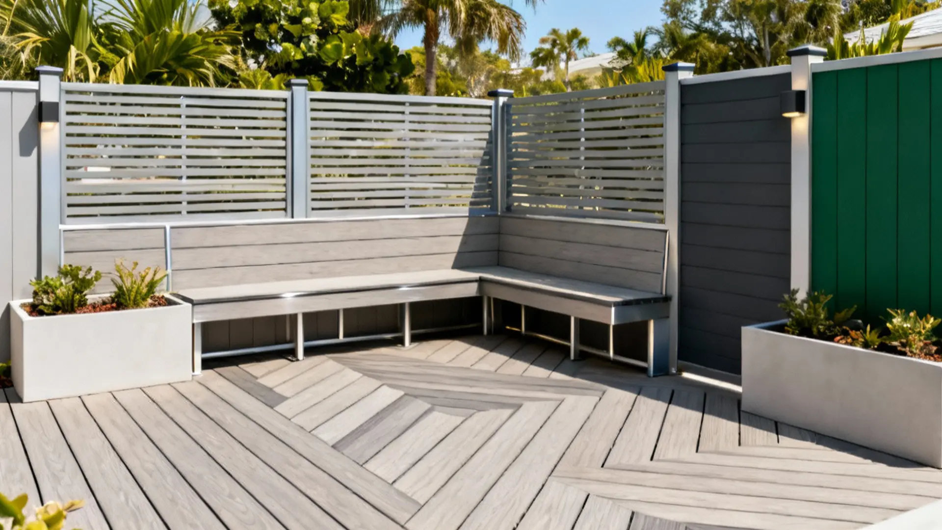 Composite boards, powder-coated metals, and durable finishes are replacing traditional wood.